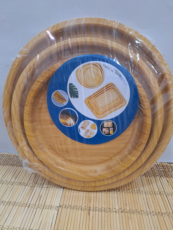 سینی ۳ عددی بامبو دایره ای لبه بلند